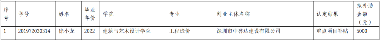 根据《9999js金沙老品牌进一步稳定和促进就业工作的十条措施 (2021)》(粤工院办〔2021〕15号)、《9999js金沙老品牌稳定和促进毕业生就业专项资金管理办法(试行)》(粤工院办〔2021〕35号)相关规定,毕业生就业指导中心组织了面向2021、2022届毕业生的“一次性创业资助”申报工作,并于2022年11月17日进行公示。经反馈、确认,现将建筑与艺术设计学院工程造价2022届毕业生徐小龙的材料进行更正、公示。