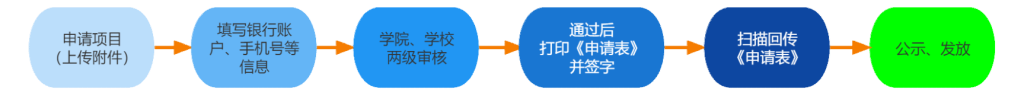各学院、就业办汇总所有申请表后统一制表,在校园内 公示 5 个工作日(预计在 11 月下旬前完成)。公示无异议后, 提交至财务处审核发放。