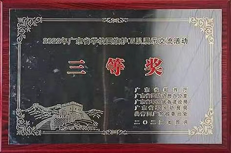 2022年广东省学校国旗护卫队展示交流活动决赛落下帷幕,我校国旗护卫队士气高昂,英姿飒爽,高质量完成了规定动作和队列展示,在比赛中荣获三等奖。