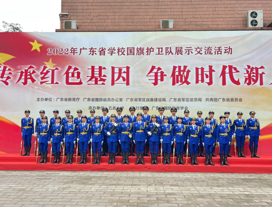 本次活动由广东省教育厅、广东省国防动员办公室、广东省军区战备建设局、广东省军区动员局、共青团广东省委员会主办,五邑大学承办,广东省国防教育会执行。我校国旗护卫队高度重视以此次活动,加强军事训练,提升军事素养,以饱满的精神、昂扬的斗志参加此次比赛,以实际行动表达了对国旗的热忱,挥洒着对祖国的热爱。