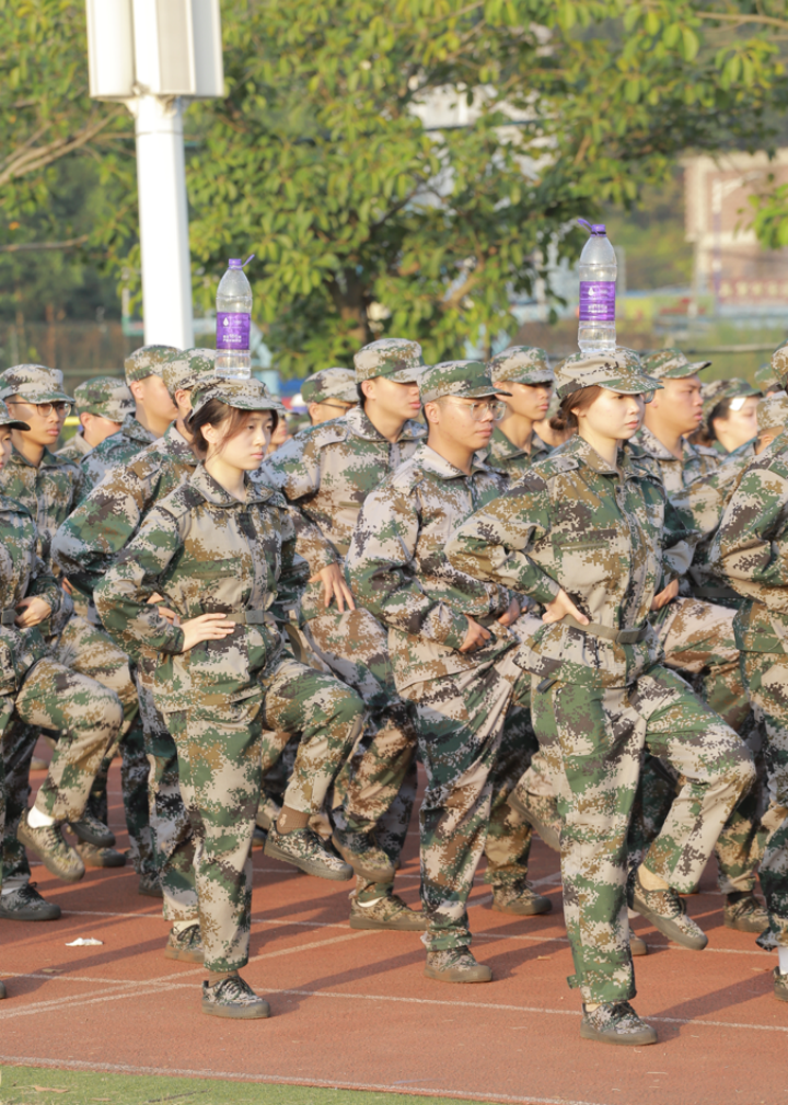 双手叉腰,单脚站立,头顶水瓶,是每个参加过军训的同学都不会褪色的回忆。即便训练再艰苦,也不愿意低头让水瓶掉落,反而是用更加坚定的目光抬头挺胸看向前方。每一滴辛苦的汗水,滑落的是年少时的浮躁;每一声坚强的呐喊,激起是青年的斗志;每一次的踏步向前,更加坚定的是青年目标与理想。在号角吹响的秋天,学子们挥洒着的是报国的热情,沸腾的是青春的热血。