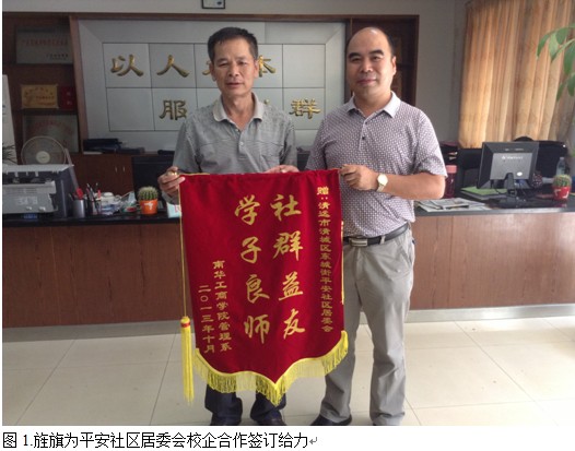在学院2+1办学模式确定后,管理系行管专业在广州开设的实训基地就难显其位置优势。很快公共事务教研室在清远校区找到了一家离学校最近的平安社区居委会,作为学生校外实训基地。但是社区领导却不愿签订实训协议,无法保证学生的合法权益。由于实训老师对学生指导尽心尽力,在创新思维的引导下,管理系领导和相关老师通过撰写感谢信和赠送旌旗,迅速打开了新局面,并顺利签下了合作协议,让学生见证了公关和创新的价值。