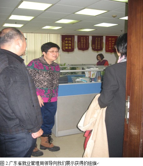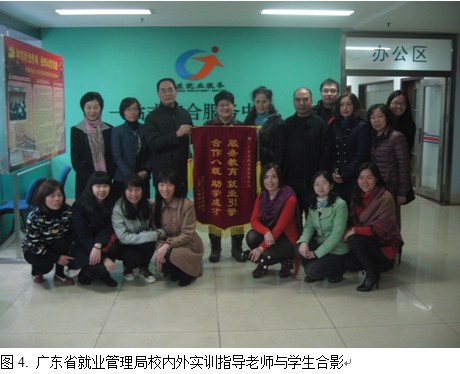 广东省就业管理局是行政管理专业最早的实训基地,历时八年之久,多年来,该实训基地不定期为管理系各专业学生提供顶岗实习的机会。由于企业方联系人临近退休,事务繁多,校企合作逐步松散。公共事务教研室经过研讨,决定以旌旗相赠,褒奖合作,密切双方联系。何沿副教授亲自设计了气势恢宏的十六字旌旗,得到广东省就业管理局领导和员工的高度重视。在旌旗赠送当天,管理系领导和老师得到管理局各级领导和员工的列队欢迎,并随即确定了企业方的两个联系人,确保了与我院校企双方的长远合作。