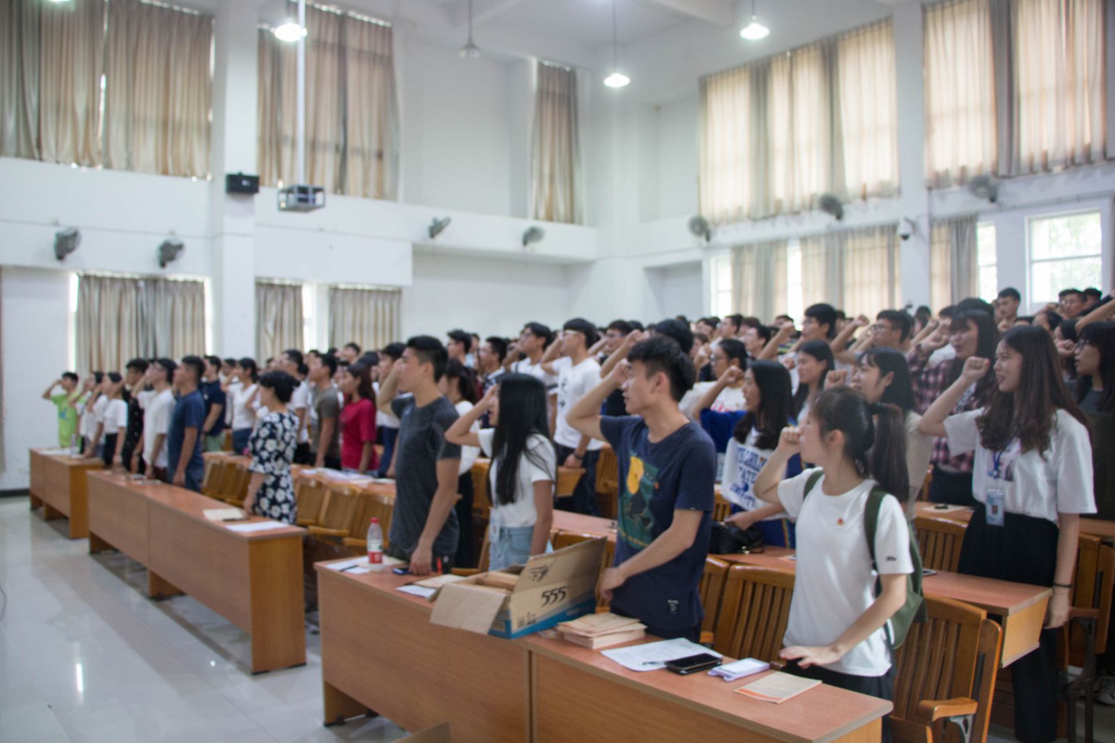 信商团学组织部组织本次的动员大会,信商团学党支部书记章小剑老师以及16级各班班长、各支部团干部、青协代表共200多名团员干部佩戴团徽参加了此次的动员大会。
