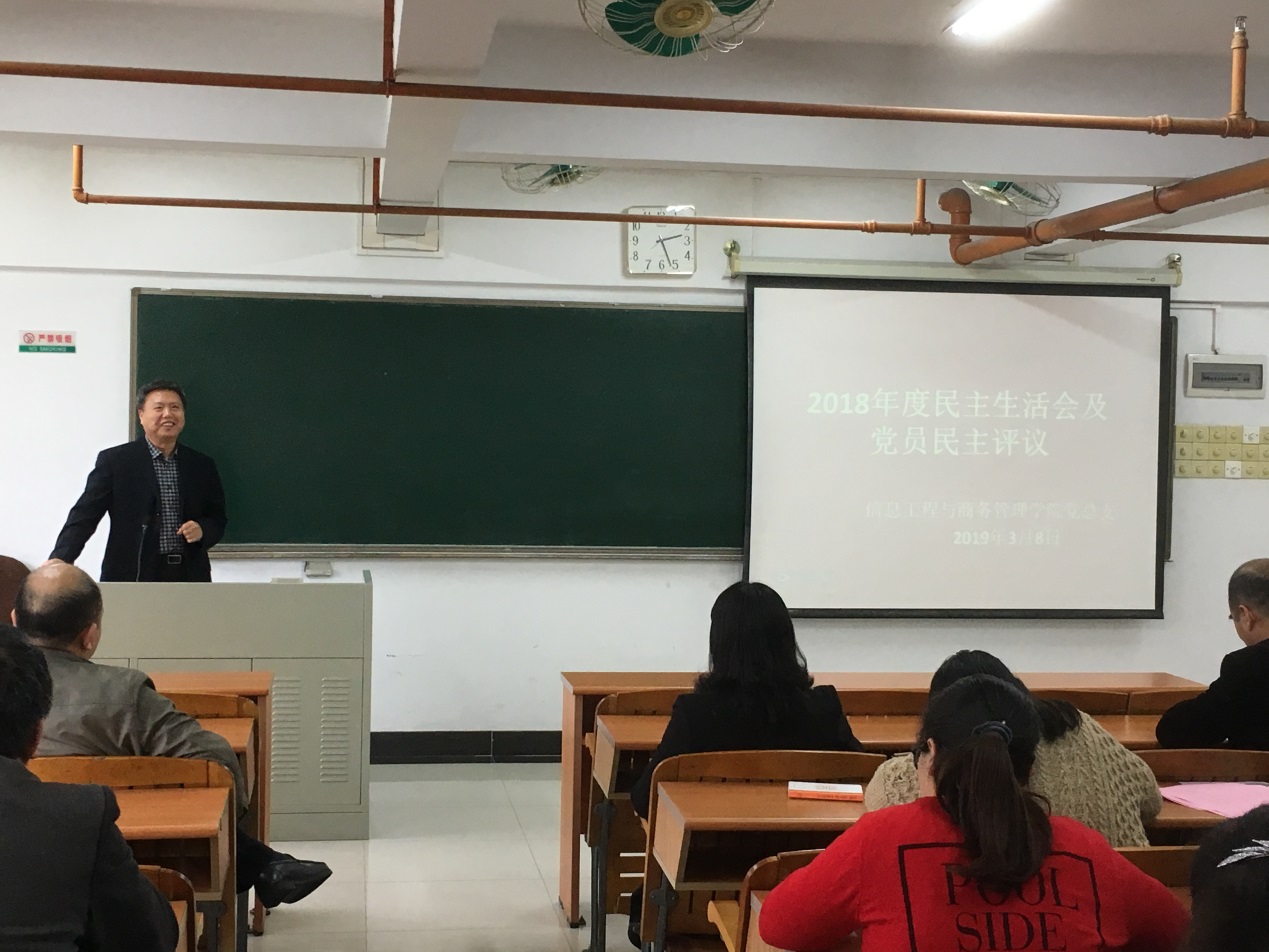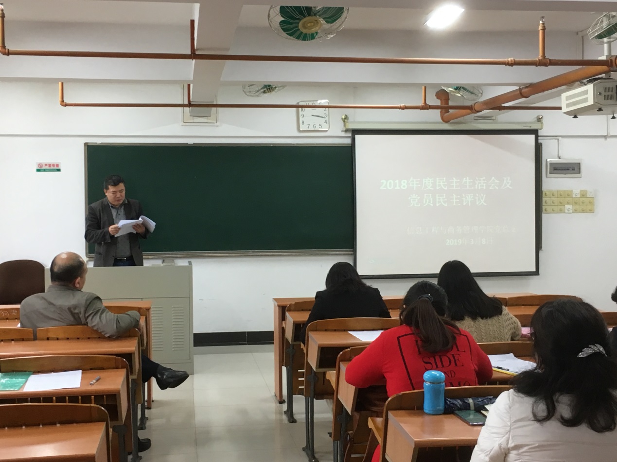 按照《中共广东省委组织部< 关于做好2018年度基层党组织组织生活会和民主评议党员有关工作的通知>》文件精神,根据学校党委统一部署,信商学院党总支部于3月8日下午在天河校区综合楼702召开2018年度民主生活会,进行党员民主评议。学校党委委员、副校长、信商学院联系人王满元到会指导,信商学院党总支部全体党员参会,会议由信商学院党总支部副书记凌红主持。