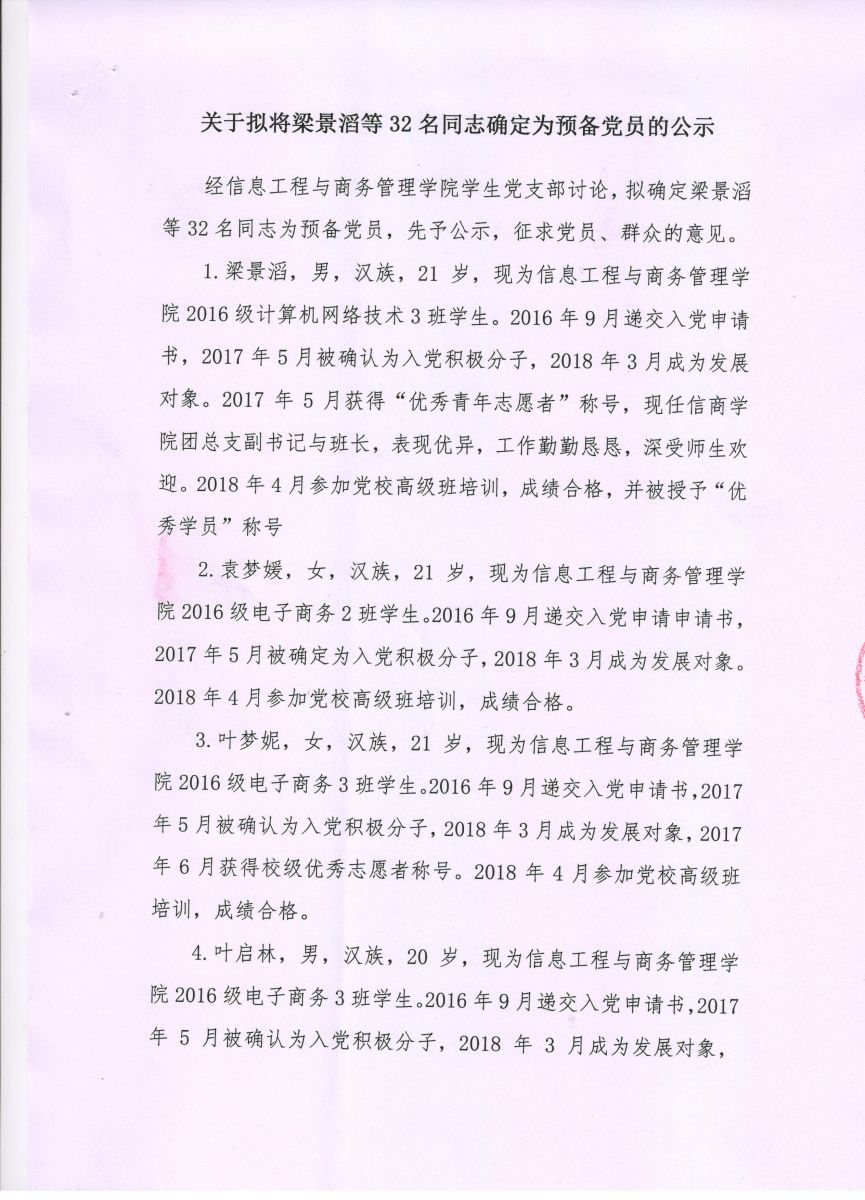 关于拟将梁景滔等32名同志确定为预备党员的公示