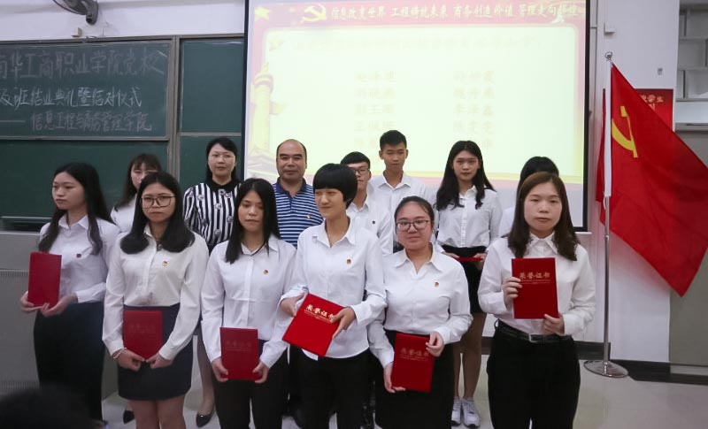 本次仪式分为11个流程。中午13:00活动正式开始。本次会议由信息学院院团委组织部干事邱洁标、钟海兰主持,他们首先对莅临本次的领导老师与同学们表示热烈欢迎,会议的第一项流程,全体起立奏唱国歌,礼毕。由主持人介绍党课中级培训班基本情况和党总支基本情况,之后对党课中级培训班中获得“优秀学员”称号的彭玉珊等11位同学进行表彰并由党总支书记李新和副书记凌红为他们颁奖,随后优秀员代表彭玉珊上台发言。之后李新书记上台讲话,他指出希望入党积极分子努力学习,勇于实践,争当先锋。在座的老师与入党积极分子都认真聆听。紧接着党总支组织委员、学生支部书记章小剑老师上台介绍入党流程,党总支凌红副书记介绍培养人的基本工作要求,入党积极分子都认真听讲。本次党课中级培训班由17级共75名经过团支部推优成功后的同学组成,培训时间从5月4日下午至5月5日下午完成中级班所有课程,5月7日完成党的基本知识培训中级班考试,整个过程同学们按照党校的纪律,学习积极,纪律表现良好。