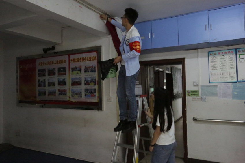 志愿者携手学员一起清洁