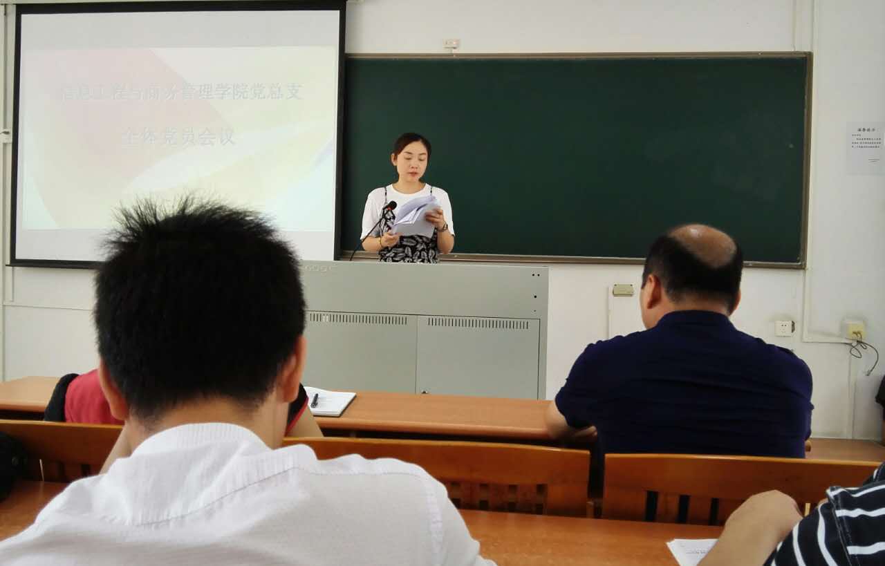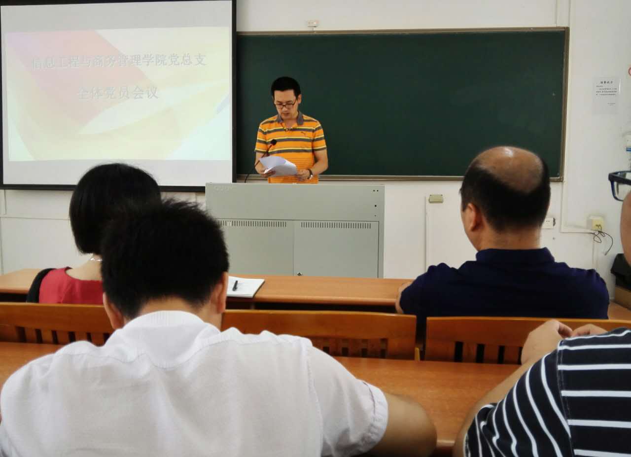 信息工程与商务管理学院党总支2016年6月16日在清远校区317召开全体党员会议,会议议题为学习习近平总书记在中国政法大学考察时重要讲话精神。信商党总支安排全体教师党员参加此次学习会议。