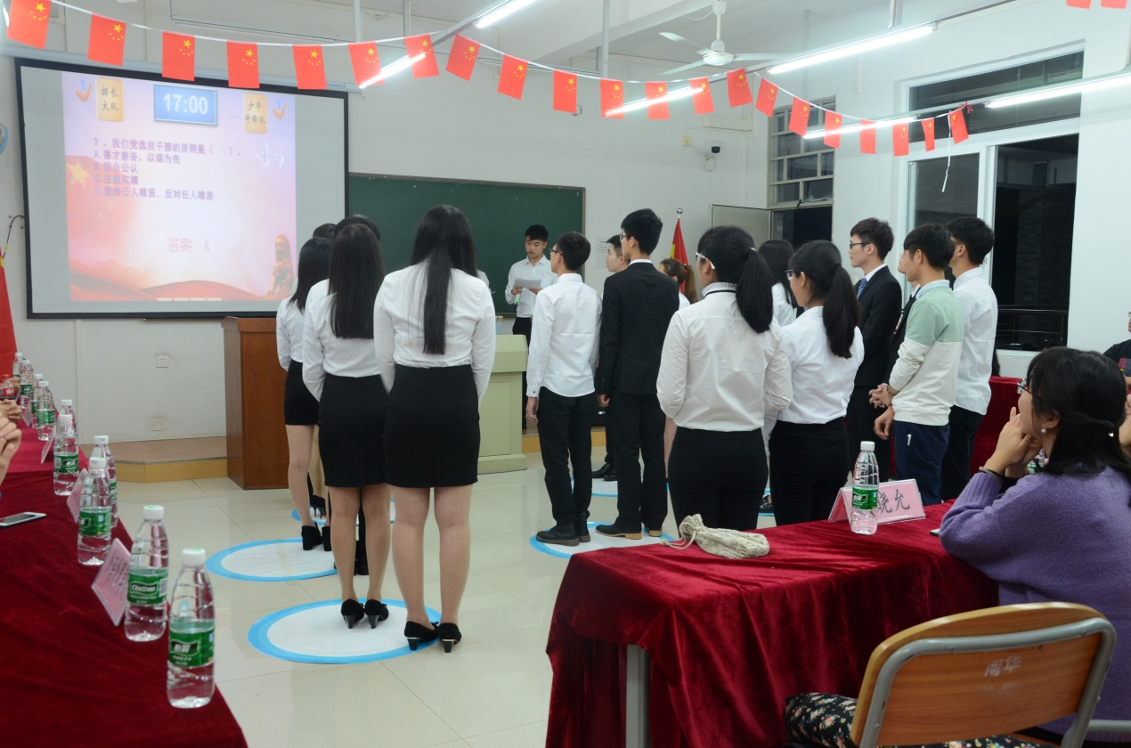 2017年3月28日19点30分,信息工程与商务管理学院主题为“牢记党史,弘扬党风”首届党的知识竞赛决赛在教学楼510开展。参加本次竞赛的嘉宾有信息工程与商务管理学院党总支凌红副书记、学生党支部的章小剑老师、梁晓允老师、陈卫强老师、陈华老师、学校五大组织的学生代表、各二级院校的学生代表以及经层层选拔出的参加决赛选手们。