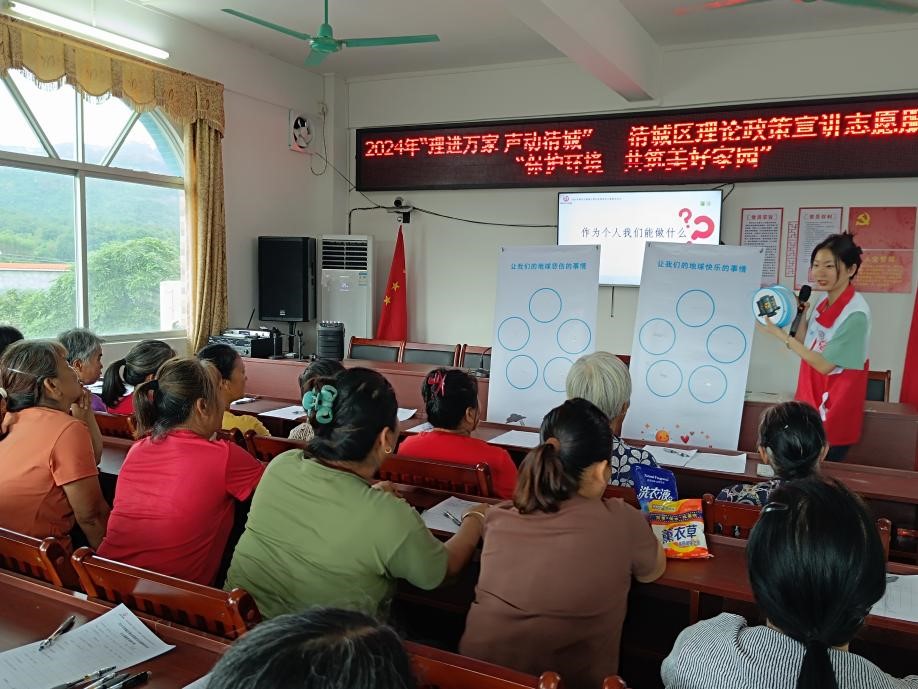 5月31日,信商学院“声动清城”青年宣讲志愿服务队分别前往清远市清城区源潭镇青龙村党群服务中心和洞尾村党群服务中心为村民们开展“环境保护,共筑美好家园”主题宣讲活动。活动旨在将环保意识植入村民心中,为推动村镇的可持续发展奠定了良好基础。宣讲员们针对听众特点,通过生动的讲解和丰富的图片、案例,向村民们阐述了环境保护的紧迫性和意义。此外在宣讲的同时还设置了“地球情绪”的小游戏环节,帮助现场观众意识并理解环保的重要性。