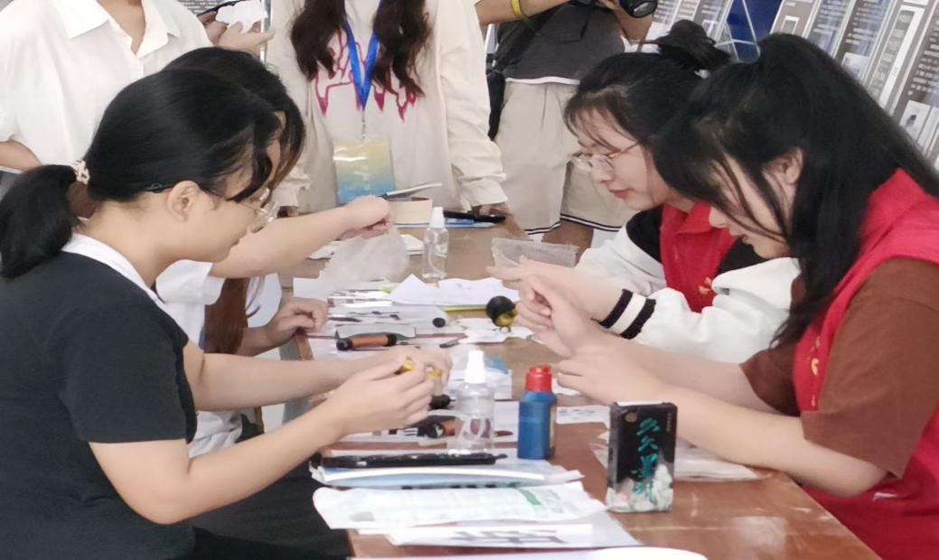 同学们纷纷驻足在这些传统文化展牌前,或欣赏图片,或交流观感,或聆听志愿者讲解,通过各种方式近距离全面地认识碑刻的历史演变、制作技艺,领略了清远市非物质文化遗产的魅力。