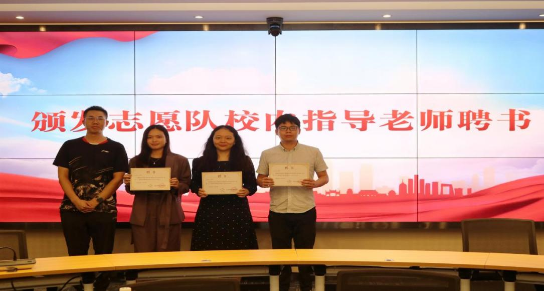 随后,清远市博物馆代表张明利为信商学院3名校内指导老师与7名探古寻“清”志愿队学生队员颁发聘书并进行合影留念。