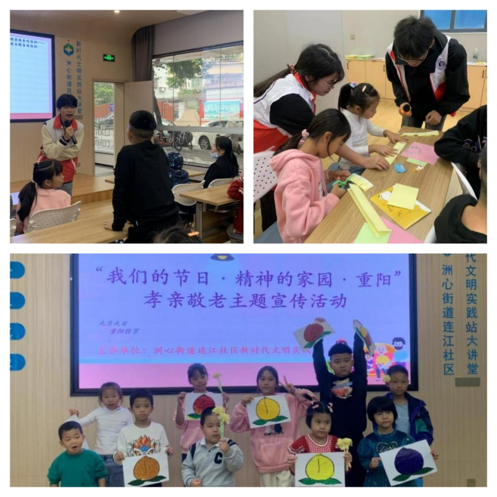 10月21日上午,信商学院组织志愿者前往清城区洲心街道连江社区,与孩子、家长们共同开展“我们的节日·精神的家园·重阳”孝亲敬老主题宣传活动,旨在传承即将到来的中华传统节日——重阳节,宣扬孝亲敬老美德,营造和谐友爱的社会氛围,让小朋友们从小树立正确价值观。本次志愿服务活动由我院学生亲自策划,设置了重阳节文化宣讲、知识抢答、手工菊花和手指印寿桃制作三个流程,活动丰富有趣,现场掀起一阵阵欢乐的笑声。