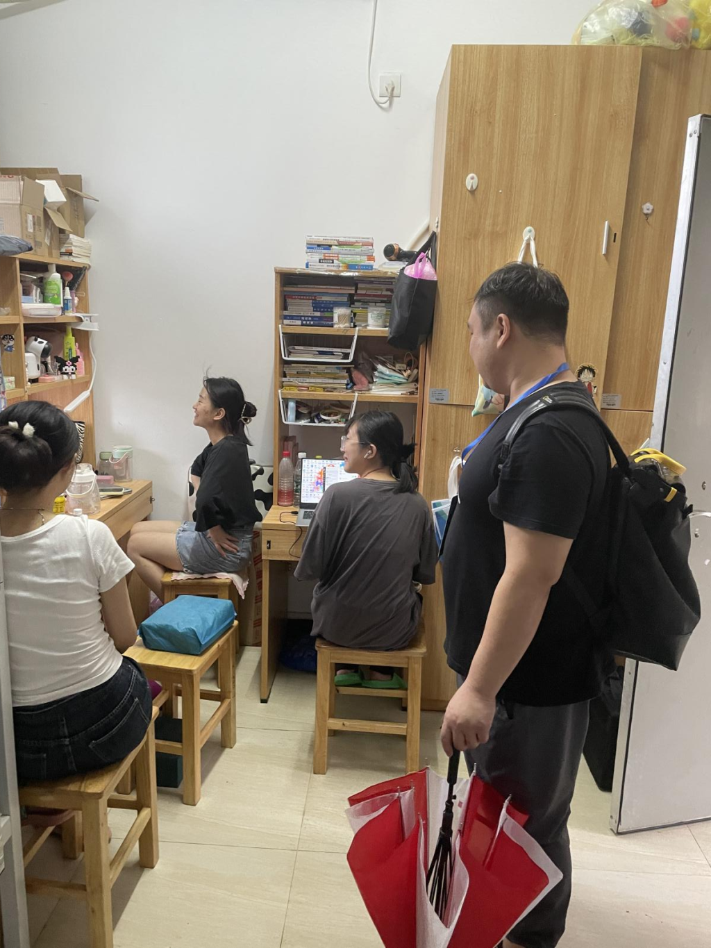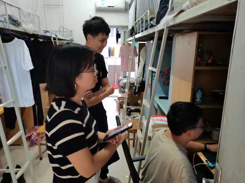 图3 辅导员陈清嫦与学生沟通宿舍生活情况