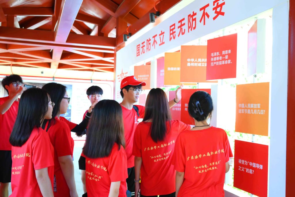 活动中,大家在解说员的带领下参观了红色主题教育长廊,共同回忆了党的百年峥嵘历史。红色主题教育长廊以党史知识小问答、井冈山精神、战线战役、国防教育知识为主线,展示了新中国从站起来、富起来到强起来的艰辛历程,展示了我国的城乡变化、人民的生活面貌和精神风貌等方面经历的时代变迁,回顾了那段澎湃人心的峥嵘岁月,让大家接受了一次深刻的思想、心灵洗礼。另外,红色长廊展示了当地的退役军人光荣事迹,通过实地参观学习,队员们切实感悟英雄革命精神,进一步坚定了理想信念,增强了队员们思想上、行动上永远跟党走的信念和决心。