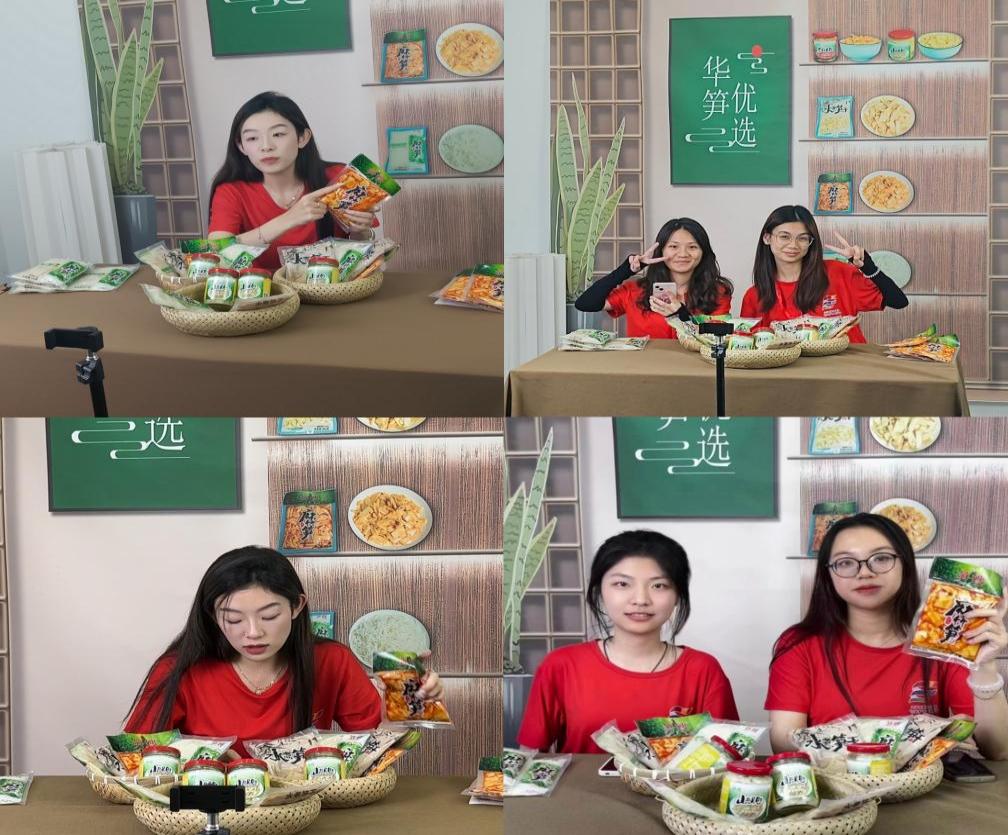上午,队员们来到华笋有限公司,与公司运营主管丘经理开会讨论直播流程,整理麻竹笋的信息,共同布置直播场地。队员们充分考虑直播时观众人数随直播进程的变化、产品关联性和对观众的吸引力,确定好商品推荐顺序,同时确定优惠券领取方式,努力争取到了较多活动和抽奖环节,以便吸引关注和流量,更好推广麻竹笋。