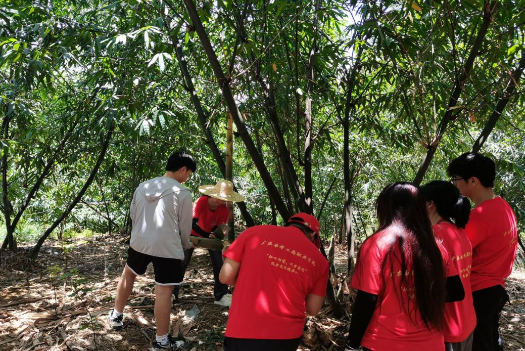 为了全面落实中共中央、国务院发布的《关于全面加强新时代大中小学劳动教育的意见》文件精神,教育引导学生崇尚劳动、尊重劳动,懂得劳动最光荣、劳动最崇高、劳动最伟大,同时为了能够让同学们体验“竹”正直、虚怀、奋进、质朴、担当品质,让同学们争做毅然挺拔、健康奋进的嫩竹,让劳动走进生活,让学习贴近生活,信息工程与商务管理学院“红心向党,筑梦前行”筑梦实践服务队前往麻竹笋种植基地开展挖笋、剥笋实践活动。