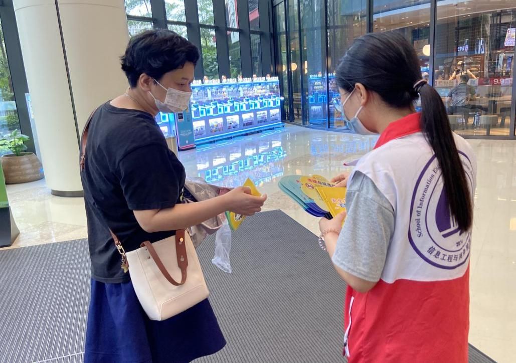 为深入学习贯彻党的二十大精神和习近平总书记关于安全生产重要论述坚持安全第一、预防为主,持续树牢安全红线意识,同时,为增强新时代大学生的社会实践能力,鼓励他们走进社会基层、了解社会实际、服务人民群众、增强时代责任,2023年6月6日,信息工程与商务管理学院(以下简称“信商学院”)应邀前往清城区东城街道清飞社区保利广场进行“安全常识”宣传活动。本次志愿者活动由信商学院团委书记龙俏颖、团委副书记吴文利和一批志愿者学生共同参与。