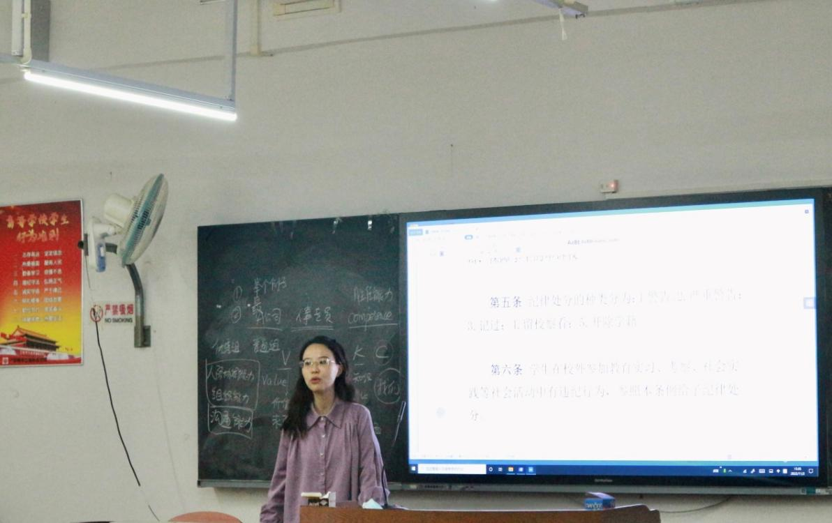图4 辅导员何抒恒开展违纪处分、考勤考纪教育课程