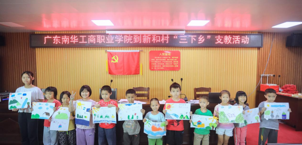 上午9点,带队老师龙俏颖、吴秋琅带领我队队员前往新和村开展以“童心向党、筑梦前行”为主题的支教活动,本次支教主要结合党史教育学习,以音乐、绘画的形式开展。当天的支教活动效果良好,得到当地群众的支持和小朋友的喜爱。教学组的队员与小朋友们一起回顾波澜壮阔的伟大复兴之路,通过传唱百年凯歌,将红色文化融入课堂教育,弘扬红色文化的时代价值,引导孩子们争做民族伟大复兴的时代新人。在支教过程中,文娱教学组注重红色文化与理论教学、实践教学等多元化教学模式相结合,以歌唱的形式将爱党、爱国、爱社会主义的情怀深深植入新和村孩子们的心中。在这种轻松、活泼的教学环境下,孩子们对红色文化知识表现出了更加浓厚的兴趣。