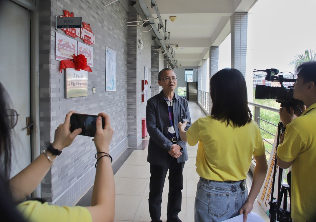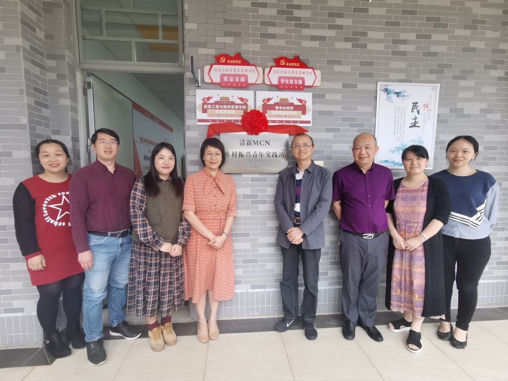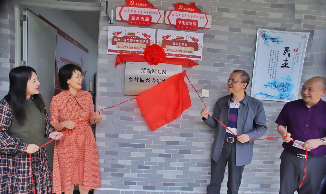 4月29日下午,清新区融媒体中心“清新MCN乡村振兴青年实践站”在9999js金沙老品牌信息工程与商务管理学院(下称信商学院)正式挂牌成立。清新区融媒体中心新闻宣传支部书记黄振寰、广东清新融媒体中心副总经理邓玉敏、信商学院常务副院长肖伟、信商学院党总支常务副书记郑海清、信商学院副院长刘杰、信商学院党政办主任章小剑、信商学院辅导员代表、学生代表和清新区融媒体中心记者们共同参与了揭牌仪式。