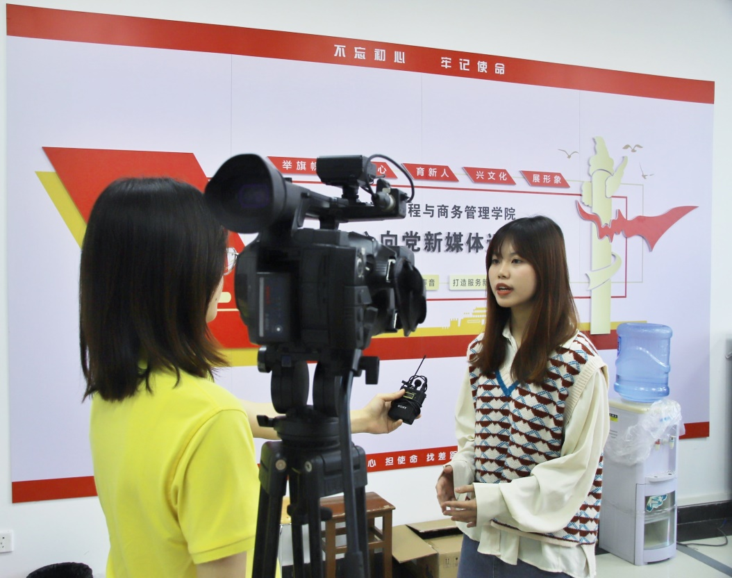 此前,信商学院学生已和清新区融媒体中心的记者们完成了结对仪式,并参与到各式各样的摄影制作中。在秦皇山上,清新区融媒体中心记者手把手教导信商学院结对学生们使用摄影器材,讲解新闻采编技巧,引导学生运用专业知识做好宣传工作,并完成了《我在秦皇上讲述100个红色故事》的前期拍摄工作,该作品一经发布,收获观众一致好评。在2021年广州红品交易会上,信商学院学生们在清新MCN机构的直播间完成了第一堂直播课,清新融媒体中心专业人才给学生讲解了很多专业直播知识,使学生收获匪浅。