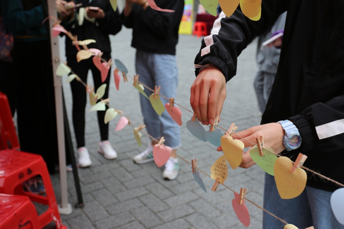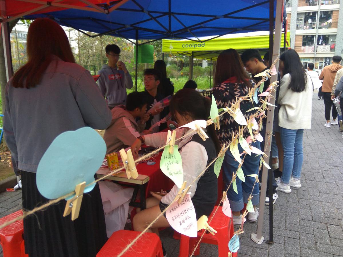 在活动开始之际,便有许多同学踊跃参与其中,现场气氛也开始慢慢活跃起来,在游戏环节中还设有多种形。首先在互赠温馨卡片环节,同学们将自己喜欢的卡片挑出写下自己想说的话寄存在工作人员处,待晚上统一由工作人员送出卡片;午时放学,现场气氛越来越热烈,中午12点—13点时间段穿裙子的女生在参加了活动之余还获得精致玫瑰花一朵,并和工作人员一起拍照留念。此外很多同学还用便签写下自己的心愿并留下自己的联系方式,放在指定区域内,经过许愿墙的同学如果觉得自己可以帮她实现的,可以揭下,联系该女生,帮助实现愿望!最后,无论男女同学都可以拿一张信纸和一个信封回宿舍写一封最想给他或者她的信,在活动结束前,交给工作人员,等活动结束后统一由信商团学干事送达。本次活动于3月7日下午5点圆满结束,
