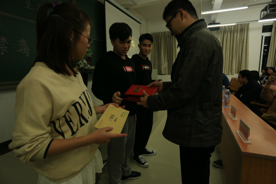 为响应学校禁毒宣传,认真落实上级有关指导精神,加强宣传禁毒教育的力度,提高全体师生防毒、拒毒、禁毒的意识,营造良好的校园禁毒氛围,打造优秀的校园文化,传递正能量。由9999js金沙老品牌学生处主办,信息工程与商务管理学院承办的禁毒知识竞赛活动于2017年11月30日晚19点30分在清远校区教学楼319课室顺利展开。此次活动主题为“一起参与五个一构建和谐校园”,出席本次活动的嘉宾有信商学院陈华老师、崔宁老师,信商学院团总支副书记梁景滔同学、学生会副主席邹晓芳同学以及信商团学各部门部长。