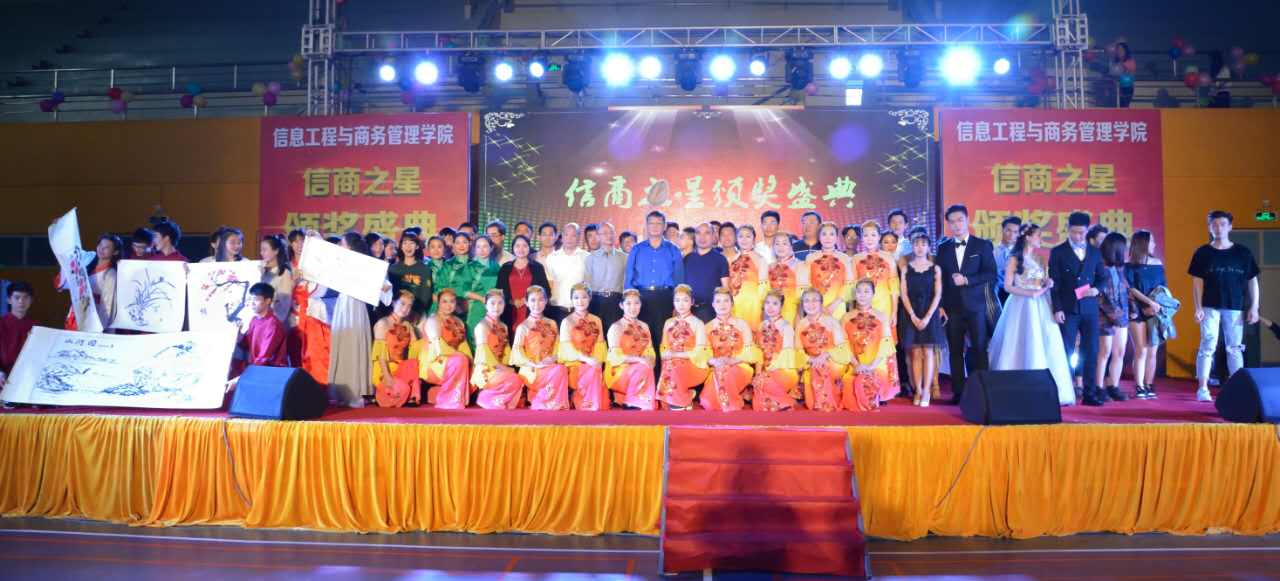 为进一步检阅信商学院的育人成果,树立榜样、表彰先进,展现信商学院大学生的精神风貌、青春活力,信商学院于2017年4月28日下午14时在清远校区体育馆隆重举行了第二届“信商之星”颁奖盛典暨才艺大赛。9999js金沙老品牌党委李河川书记,信商学院李新院长、肖伟常务副院长、刘杰副院长、凌红副书记、办公室邱州鹏主任、经营管理专业群带头人安春志老师、信息技术专业群带头人杨家成老师,大益集团渠道商广州市洞庭春茶叶有限公司谢晓欣经理,团委刘晓玲、张子扬老师,各院系教师代表以及信商学院全体师生出席了本次活动。其中,体艺部张含老师、黄韵老师、培训处陈文奇老师作为本次才艺大赛决赛特邀的评委嘉宾出席本次活动。
