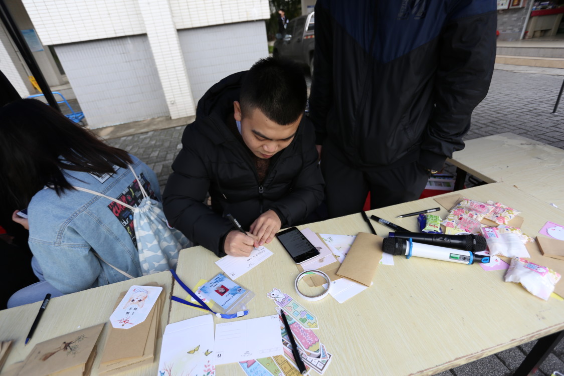 活动伊始,负责本次活动的女生心理部成员早早在活动现场进行布置,即使因天气不好下雨,并未浇熄工作人员与同学们参与活动的热情。活动现场,工作人员准备了玫瑰花、心意卡片、化妆小礼品。很多女生在明信片上写下许多祝福语,在宣传板上贴满各种心愿,男同学也积极参与其中揭下觉得哪个写有愿望便签是自己可以实现的。放学后同学们来来往往,热闹非凡,同学们挑选自己喜欢的卡片并写下温馨祝福语,寄存在工作人员处。随着时间的推移,活动也在如火如荼地进行着。与此同时,工作人员给今天穿牛仔裙的女生赠与玫瑰花,并合影留念,照片里的她们充分展现出女生们幸福的笑容。晚上9时,工作人员收集好大量的祝福明信片和信件,并将其送至收信人的手里,祝福收信人“女生节快乐!”。