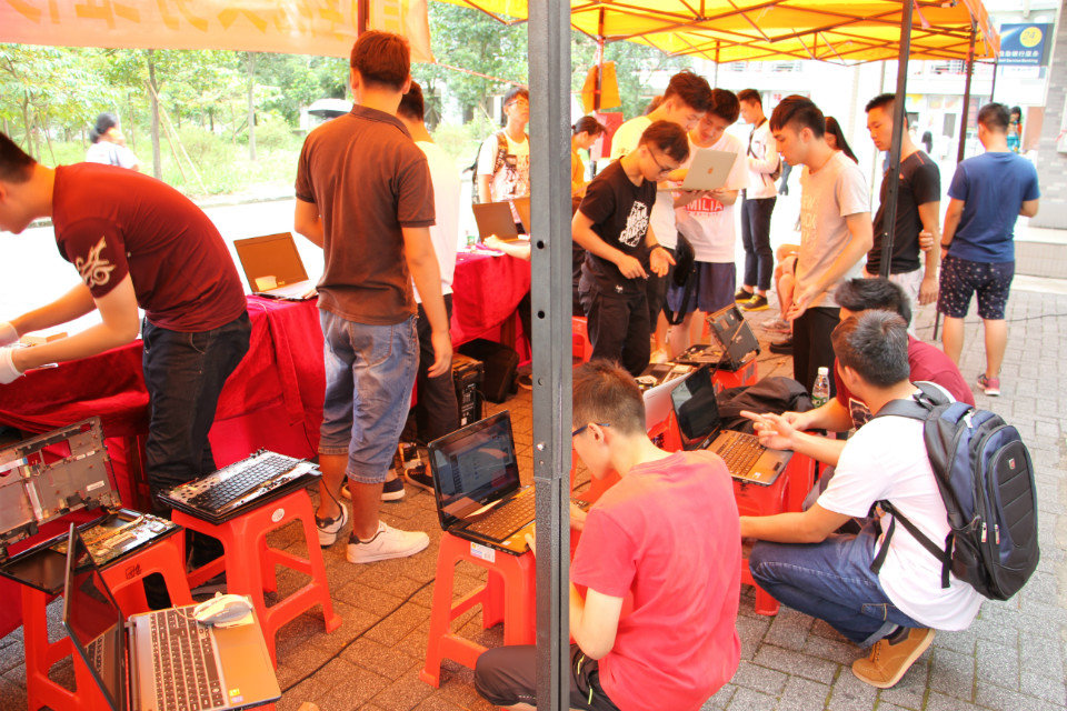 为帮助广大师生解决有关电脑方面的问题,2016年10月21日信商学院团总支学生会本着“服务大家,丰富自己”的理念在宿舍2栋楼下摆摊开展义务维修电脑主题团日活动。