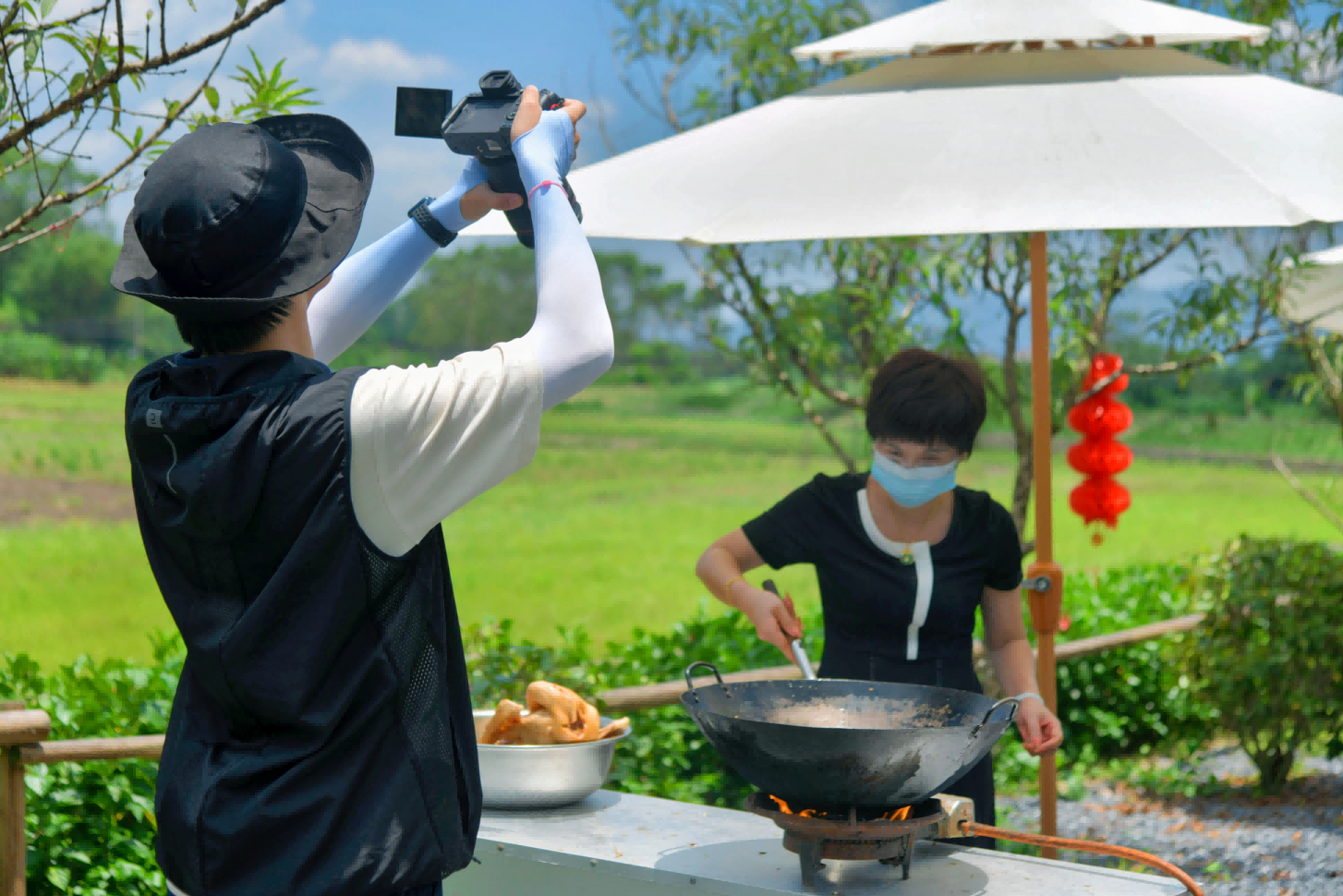 图为“红心向党,筑梦前行”筑梦实践队在拍摄陈皮碌鹅制作过程。陈雨洁供图。