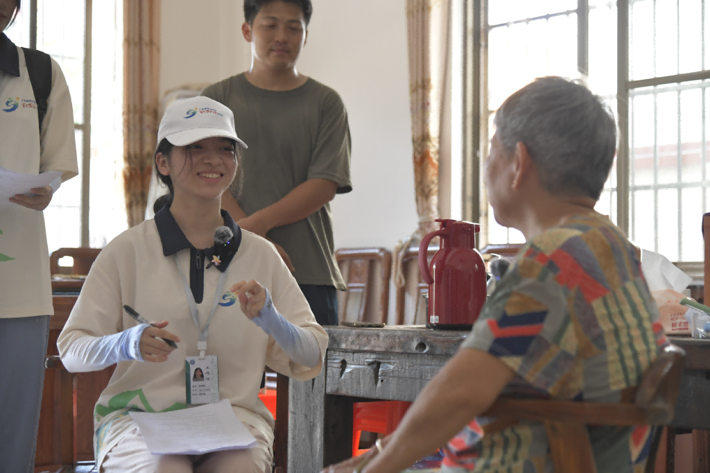 图为“红心向党,筑梦前行”筑梦实践队在与村民交流调研。黄炜俊供图。