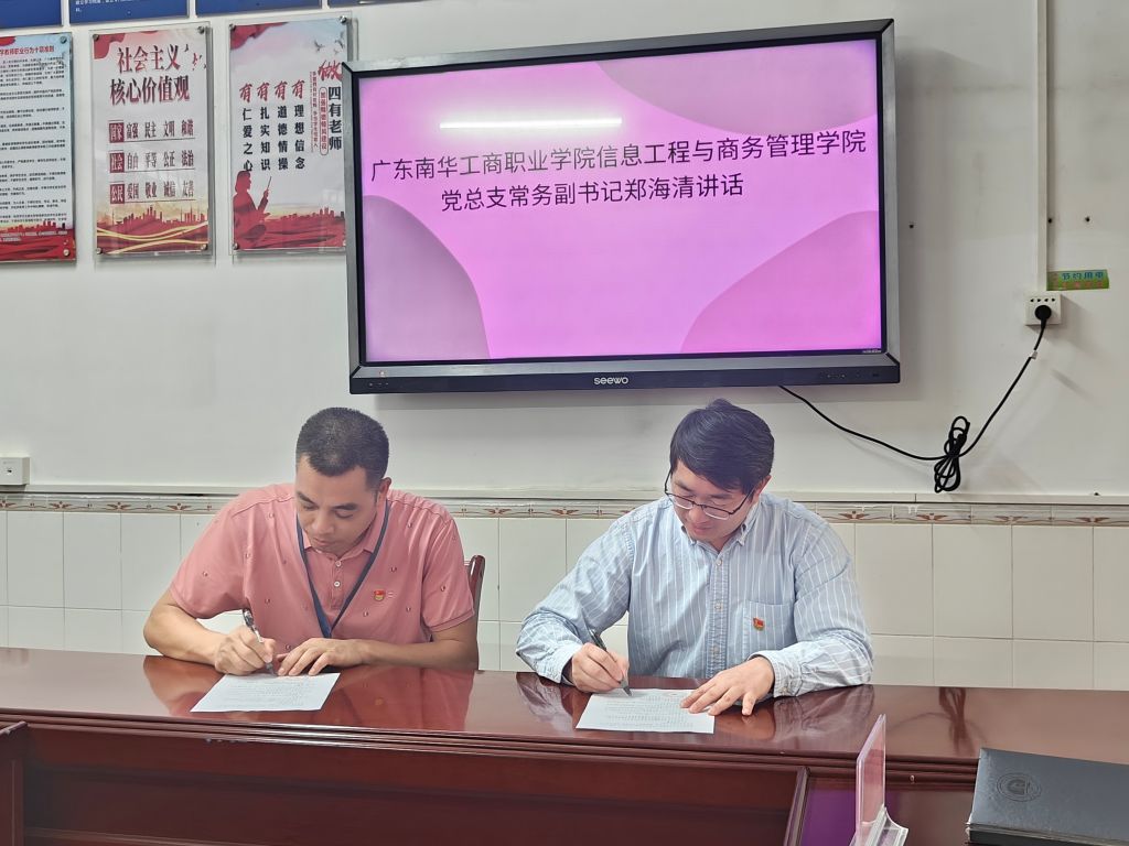 随后,信商学院党总支常务副书记郑海清在会上从专业优势、师资情况及近年来学院“百千万工程”突击队取得的成绩等方面介绍学院基本情况,并提出希望借此契机能够达到双方优势互补、资源共享的目的,从而进一步推进“百千万工程”突击队工作开展和乡村振兴发展,助力广东省高质量发展。