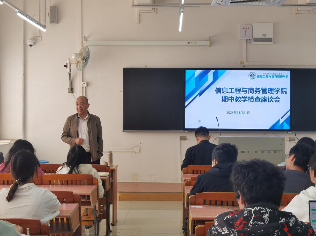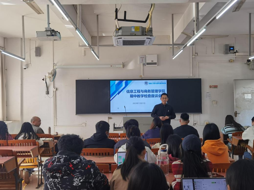 为全面了解本学期开学以来教学运转情况,加强教学过程监督,及时发现并解决教学过程中存在的问题,唐晓林副校长带队于第12周深入信息工程与商务管理学院(以下简称“信商学院”)开展期中教学检查。
