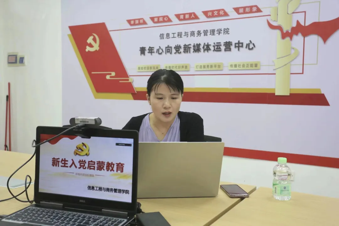 在第三个模块内容中,信商学院学生党支部书记章小剑与团委书记龙俏颖分别对党团教育内容进行了详细的讲解,并系统介绍了党团组织的建设、入党入团要求及流程等内容,同时鼓励同学们要立志做有理想、敢担当、能吃苦、肯奋斗的新时代好青年,让青春在全面建设社会主义现代化国家的火热实践中绽放绚丽之花。