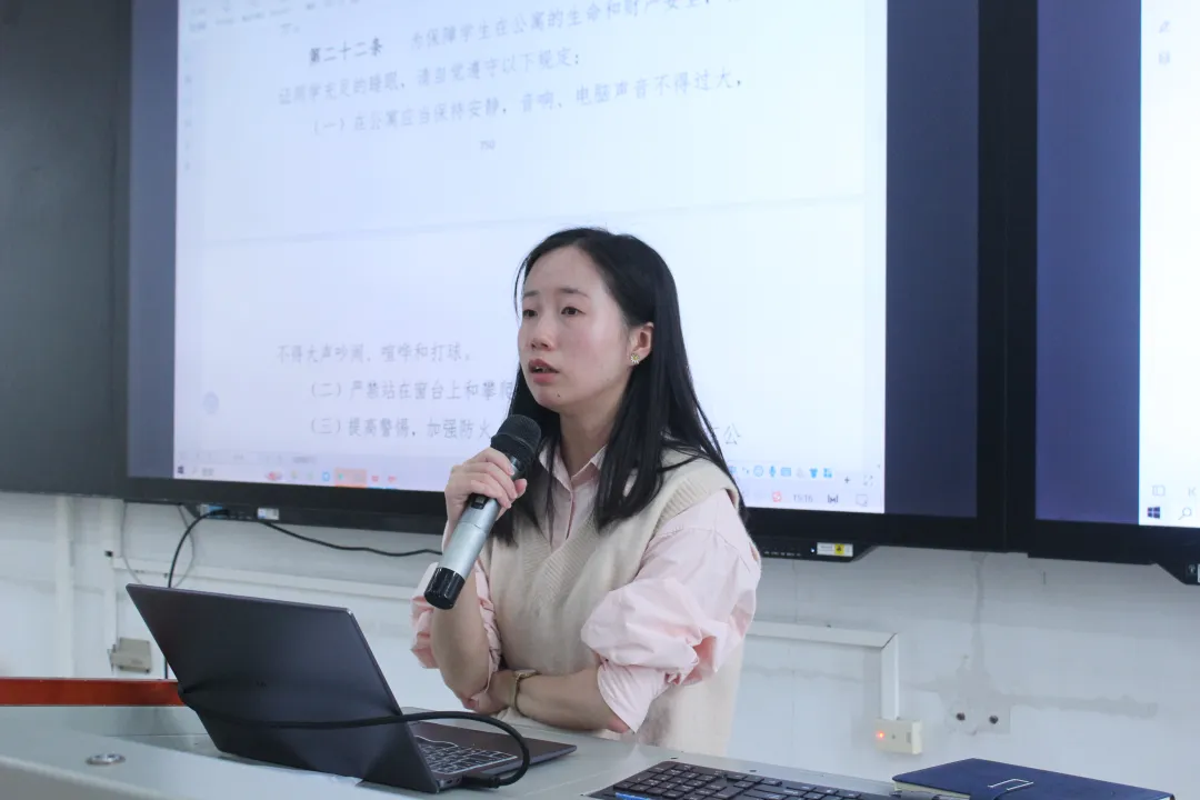 在第二个模块内容中,各辅导员详细介绍了理想信念教育、“五史”学习教育等多个板块内容,并通过视频、图文等多种方式重点围绕校规校纪、奖助政策等内容进行了讲解,帮助同学们更好地理解学生手册相关规定以及各类政策制度,加深对大学生活的了解与适应,为今后的学习生活打下良好的基础。