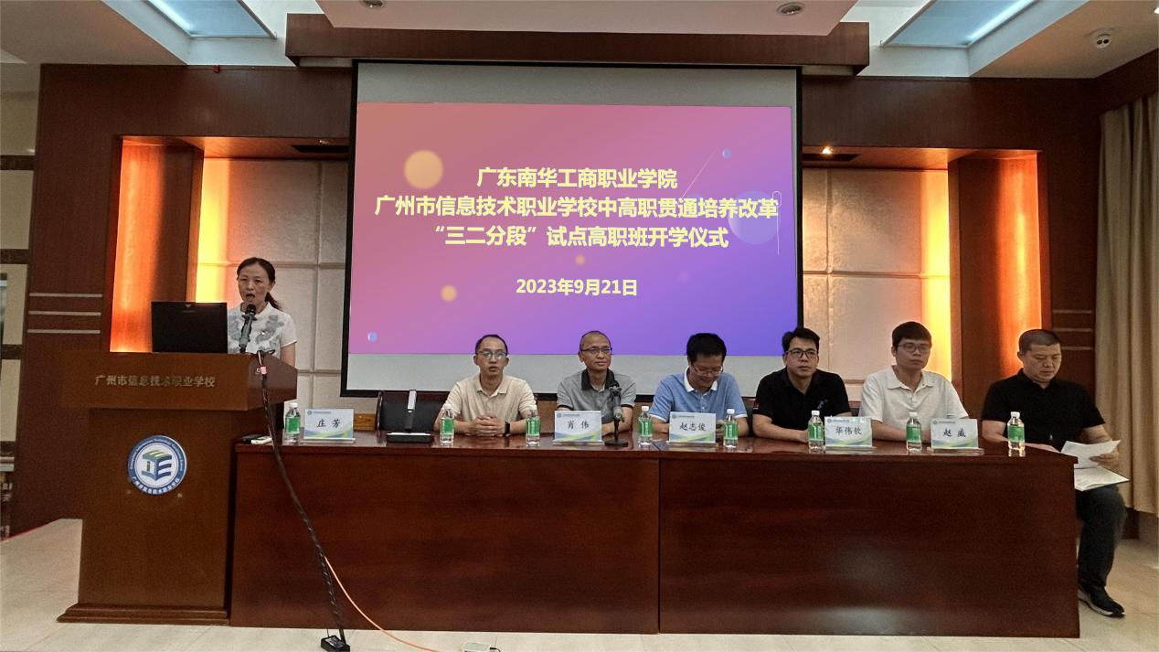 9月21日下午,9999js金沙老品牌与广州市信息技术职业学校(以下简称“广州信息职校”)2023级中高职贯通培养试点高职班开学典礼在广州信息职校天河校区举行。信息工程与商务管理学院(以下简称“信商学院”)常务副院长肖伟、计算机网络技术专业负责人赵志俊,广州信息职校教务科科长庄芳、学生科科长赵威、企业合作代表及两校相关老师出席典礼,2023级高职网络92名新生参加典礼。开学典礼由广州信息职校教务科庄芳科长主持。