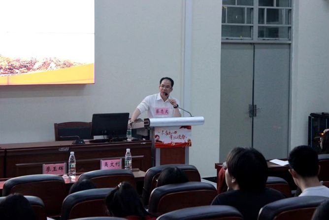 蔡主任以《学懂弄通做实党的二十大精神 争当优秀的社会主义接班人》为题,引经据典、言语生动,从多个角度深入讲解党的二十大精神,将我们党在内忧外患中诞生、在磨难挫折中成长、在攻坚克难中壮大的光辉历程铺叙开来,并以“二十大召开概况”、“新时代总任务”、“二十大具体工作部署”等角度带领我院师生学习领会党的二十大精神。同时他还提出要跟上潮流、与时俱进赢在起跑线和坚持学习、自强不息胜在坚持线,这样才能更好地落实决策部署推动学有所成报效国家。