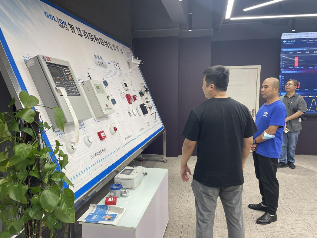 走访小组到达企业后,在广东力安测控科技有限公司潘总经理的带领下,先参观了广东力安测控科技有限公司的产品展示厅以及办公场所。潘总经理介绍,广东力安测控科技有限公司是2019年成立的,目前在清远智能消防领域属于技术领先的企业,主要从事智能消防与电气火灾监控系统研发、销售,智能管理平台研发以及运行维护服务,服务对象大部分是面向政府机构部门服务,对地区消防管控提供更科学有效的抓手和途径。