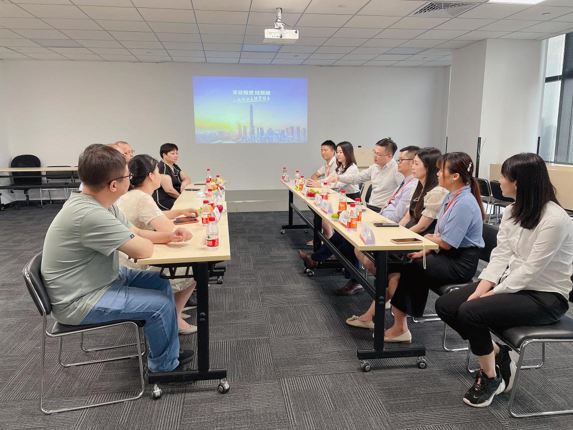 为扎实开展书记校长访企拓岗促就业专项行动,稳步推进学院就业工作,增强就业工作实效,2022年7月7日上午,信息工程与商务管理学院(以下简称“信商学院”)积极响应学校就业指导中心安排,赴平安普惠企业管理有限公司实地走访调研并进行校企合作洽谈。信商学院党总支书记兼院长李新、信商学院常务副院长肖伟、信商学院党总支常务副书记郑海清、信商学院党政办主任章小剑、辅导员陈清嫦和陈卫强一行六人组成走访小组,一同前往平安普惠企业管理有限公司进行走访调研。