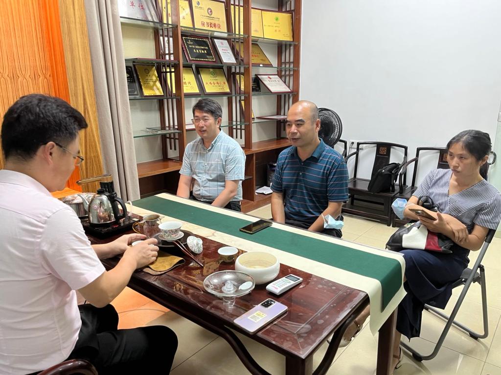 为扎实开展书记校长访企拓岗促就业专项行动,稳步推进学院就业工作,了解企业人才需求,2022年7月4日下午,信息工程与商务管理学院(以下简称“信商学院”)积极响应学校就业指导中心安排,赴广州恋茶科技有限公司实地走访调研并进行校企合作洽谈。信商学院党总支书记兼院长李新、信商学院党总支常务副书记郑海清、电子商务专业负责人佘碧蓉、市场营销专业负责人贾晓松等一行四人组成走访小组,一同前往芳村广东茶叶城广东恋茶科技有限公司进行走访调研。