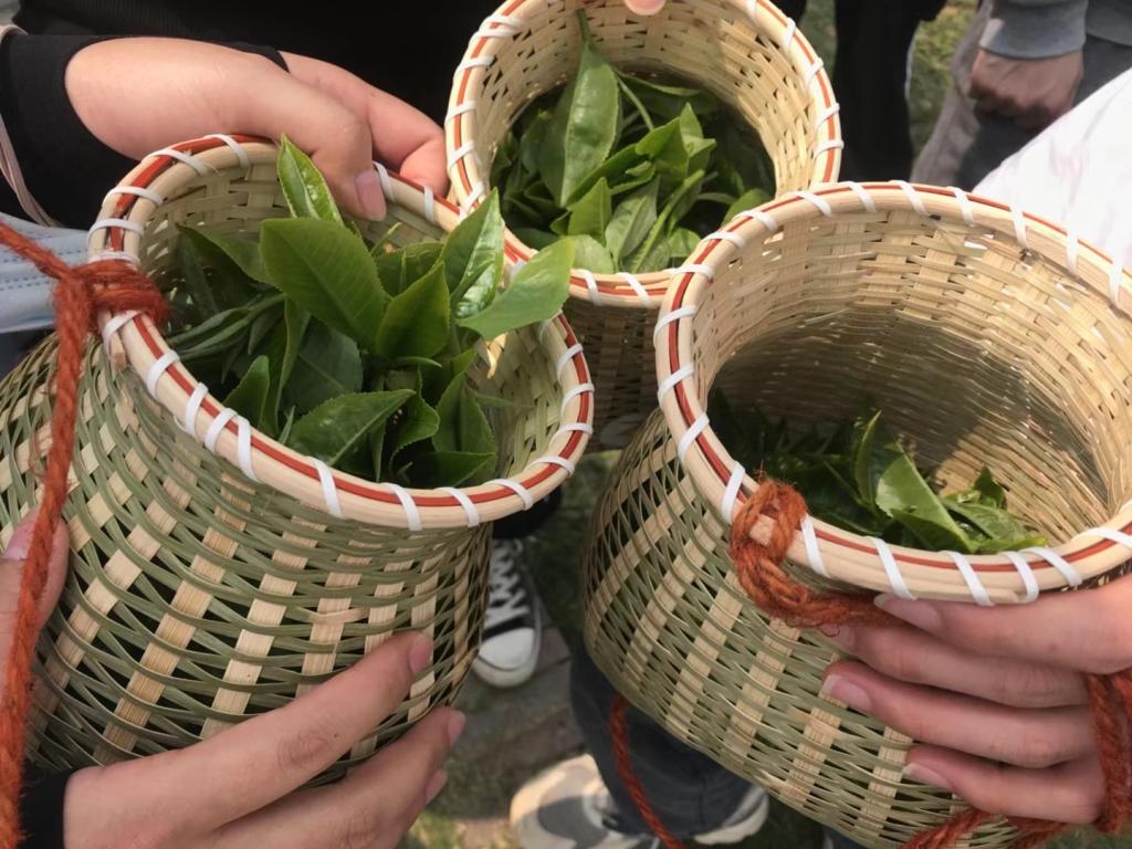 抵达茶园后学生见证了大学生校外基地授牌、签约仪式等活动后,稍作休息后,便前往展厅参观,了解茶的成品。同学跟随着讲解员去到制茶厂,了解茶的品种、历史和制作工艺等。随后便前往积庆里茶园进行了采茶活动,茶山满园铺绿,苍翠欲滴,学生们兴趣盎然。同学们在茶园中仔细的分辨着不同茶叶品种的植株高度、叶片大小、叶片形态,并从中精心挑选出一片片嫩绿的茶叶芽头,活动中同学们兴致勃勃地感受着满园绿意带来的赏心悦目,体验着亲自采茶的艰辛劳作,理论和实践相结合,使学生对专业的技能有了进一步了解。