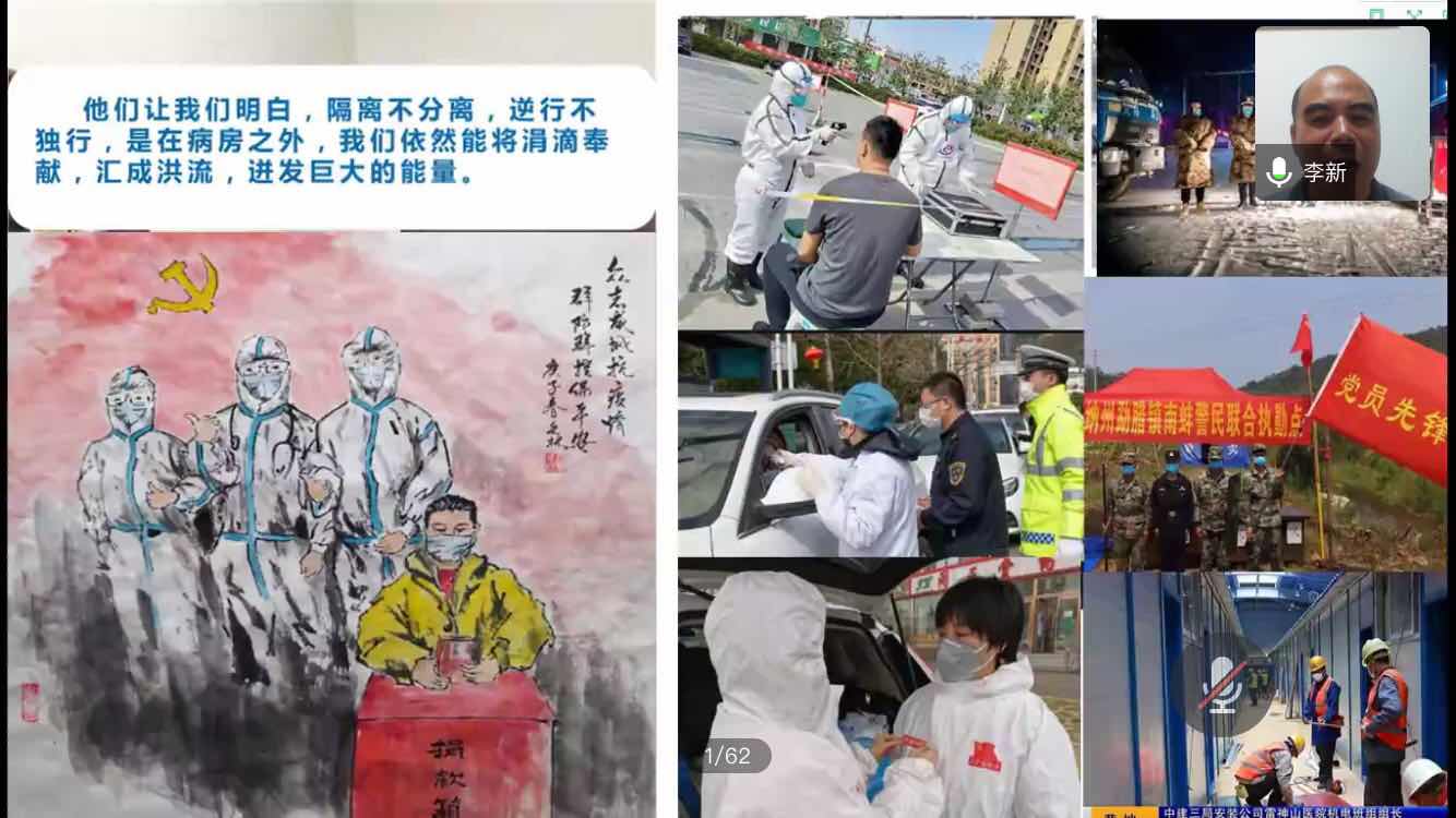 最后,李新书记通过对积极抗“疫”、坚持学习的所有同学表示肯定并提出希望,他勉励广大同学:“要把此次疫情作为开学的第一堂课,通过克服困难不断追逐“两个一百年”和“民族复兴”的光荣梦想。作为祖国的脊梁,在记得困难和伤疤的同时,要更加努力以自己的学识保护自己所爱的人,作为个体要记住那些用自己的生命换回祥和安宁发光的灵魂。”他在最后督促所有的同学们都要在疫情防控实践中增强责任担当、学会健康成长。