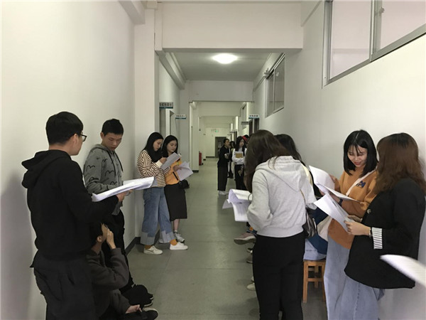 本次答辩根据不同专业划分相应小组,我院所有毕业设计指导教师均参与本次设计答辩评阅工作。8:50分左右,参加答辩的同学们早已聚集在教室门外,紧张兴奋地等待答辩开始。本次答辩分为学生陈述与老师提问两个环节。