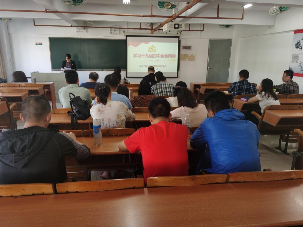 11月8日,信息工程与商务管理学院召开党总支全体教师党员会议,传达学习党的十九届四中全会精神。