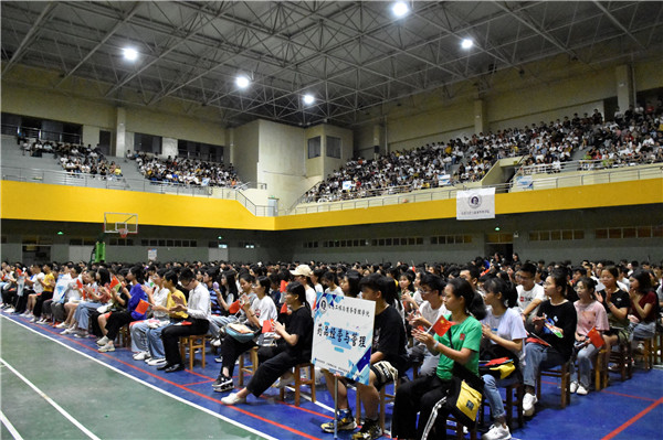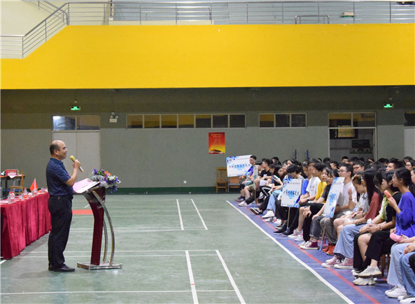 根据教育部、省教育厅相关要求,按照校党委任务部署,信息工程与商务管理学院党总支书记、院长第一堂思想政治理论课于2019年9月15日晚上7点45分在清远校区体育馆进行。本次课程面向2019级全体新生,由信息工程与商务管理学院党总支书记、院长李新讲授以“我和我的祖国——奋进新时代,开启新征程”为主题的第一堂思想政治理论课。