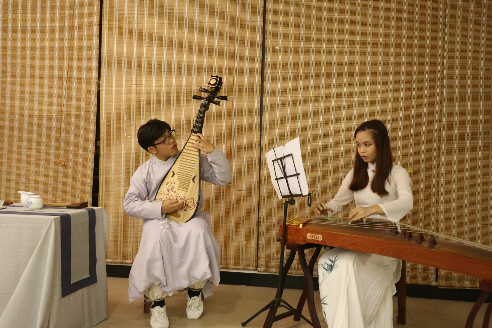 最后,由郑观辉和李雅雯同学带来琵琶、古筝合奏—《送别》,欢送即将前往黄埔校区就读的师兄师姐们。在切蛋糕环节过后,与会成员合影留念,第三届换届大会暨欢送会就此圆满落幕!希望新一届茶室运营团队能不忘初心,砥砺前行,将大益爱心茶室推广出去,让更多人能了解茶文化、学习茶文化。