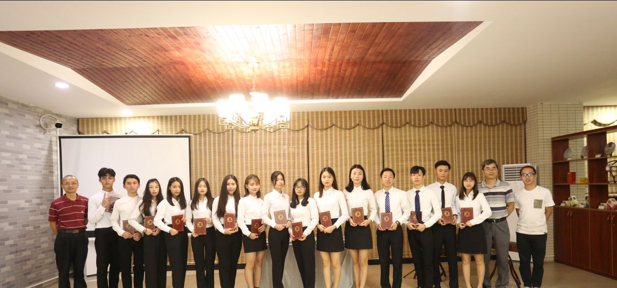 其次,由第三届运营团队店长郑杪楠同学对茶室这一年运营情况做年度工作汇报,并提出个人对茶室接下来运营的意见。接着,由肖伟常务副院长、杨家成副院长为第三届团队骨干成员颁发聘书,第二届运营团队店长陈良川师兄分享外出实习经验,茶室指导老师李宇清老师宣读第四届运营团队骨干名单,新一任店长赵颖发表就职感言,茶室大二级学生代表高级茶艺师的杨焱婷同学和大一级学生代表郑观辉同学分享在茶室的收获和感言。